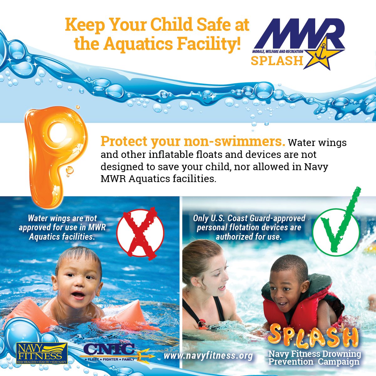 • All children 17 & under must take the Navy Youth Swim Test to swim outside of the non-swimmer zone.